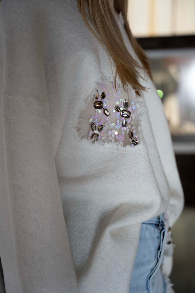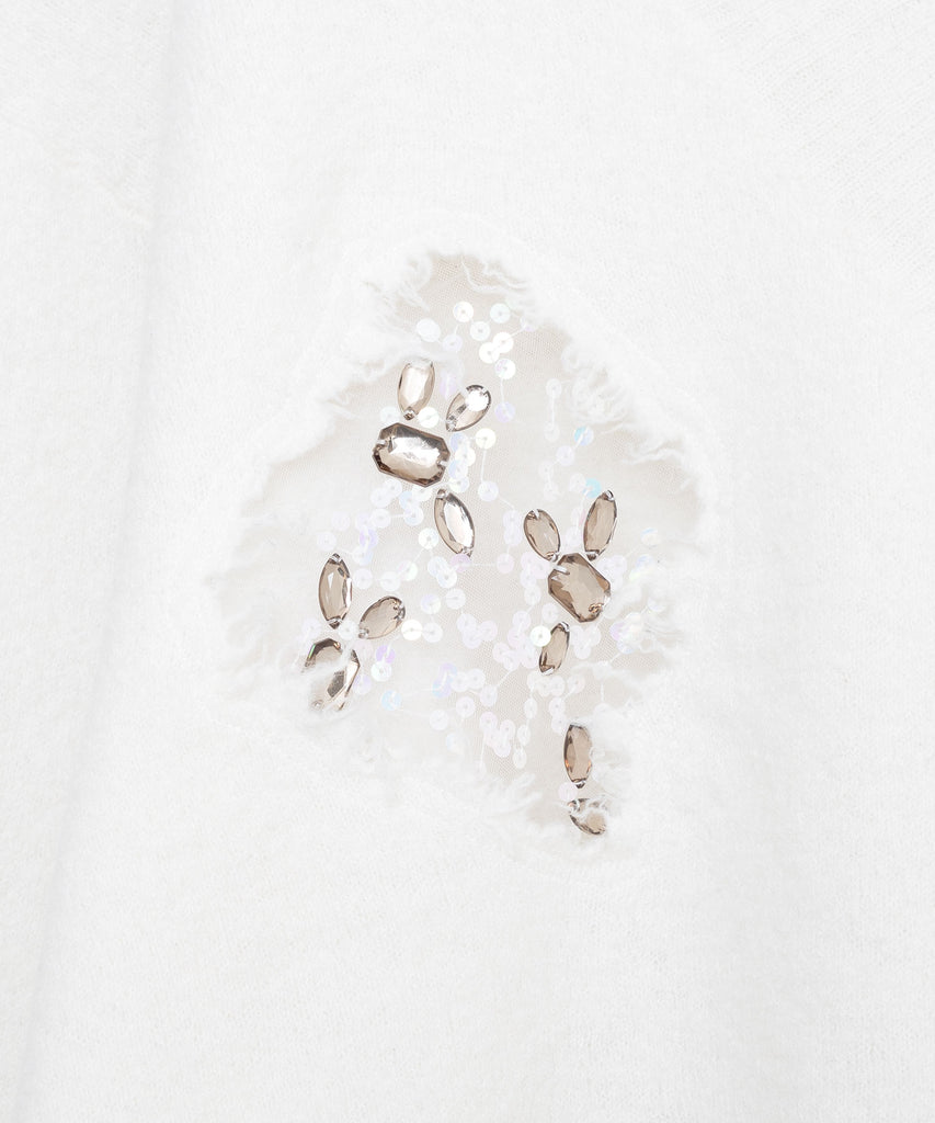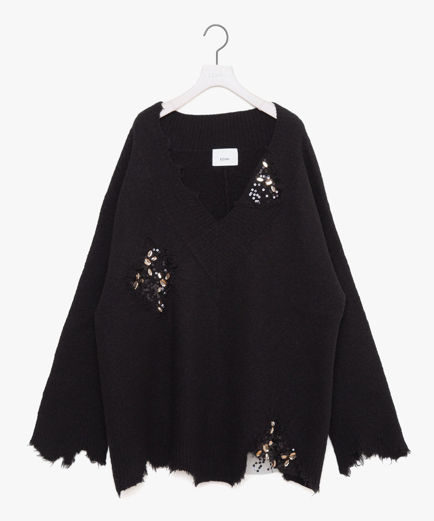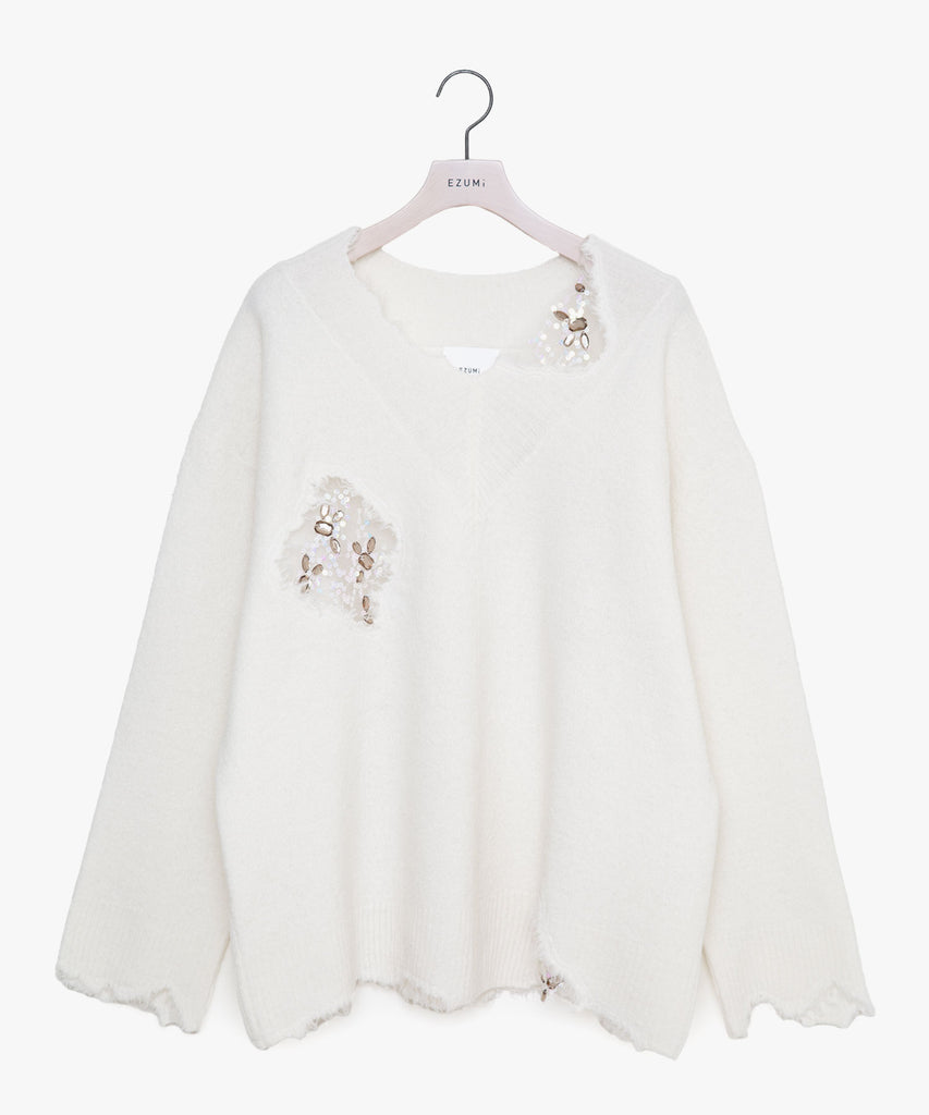 ビーズ刺繍が施された独特なデザインが、印象的なデストロイセーターです。