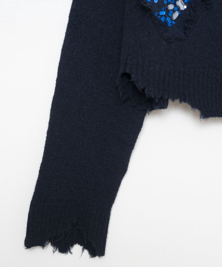 洗練されたデザインとディテールが光るデストロイカーディガンです。