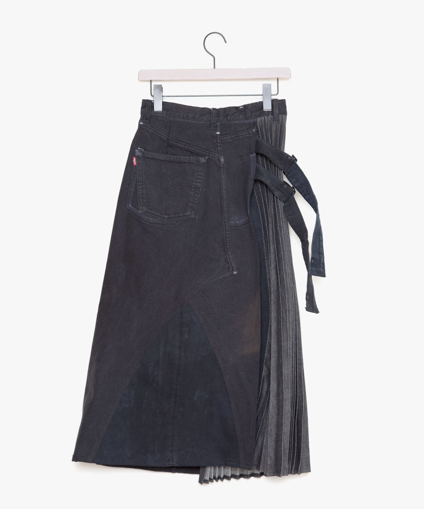 リーバイス501のデニムパンツを解体しプリーツデニムとドッキングしたデニムプリーツスカートです。