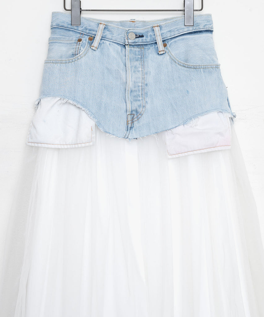 リーバイス501のデニムパンツを解体し繊細なチュールとドッキングしたクチュールスカートです。